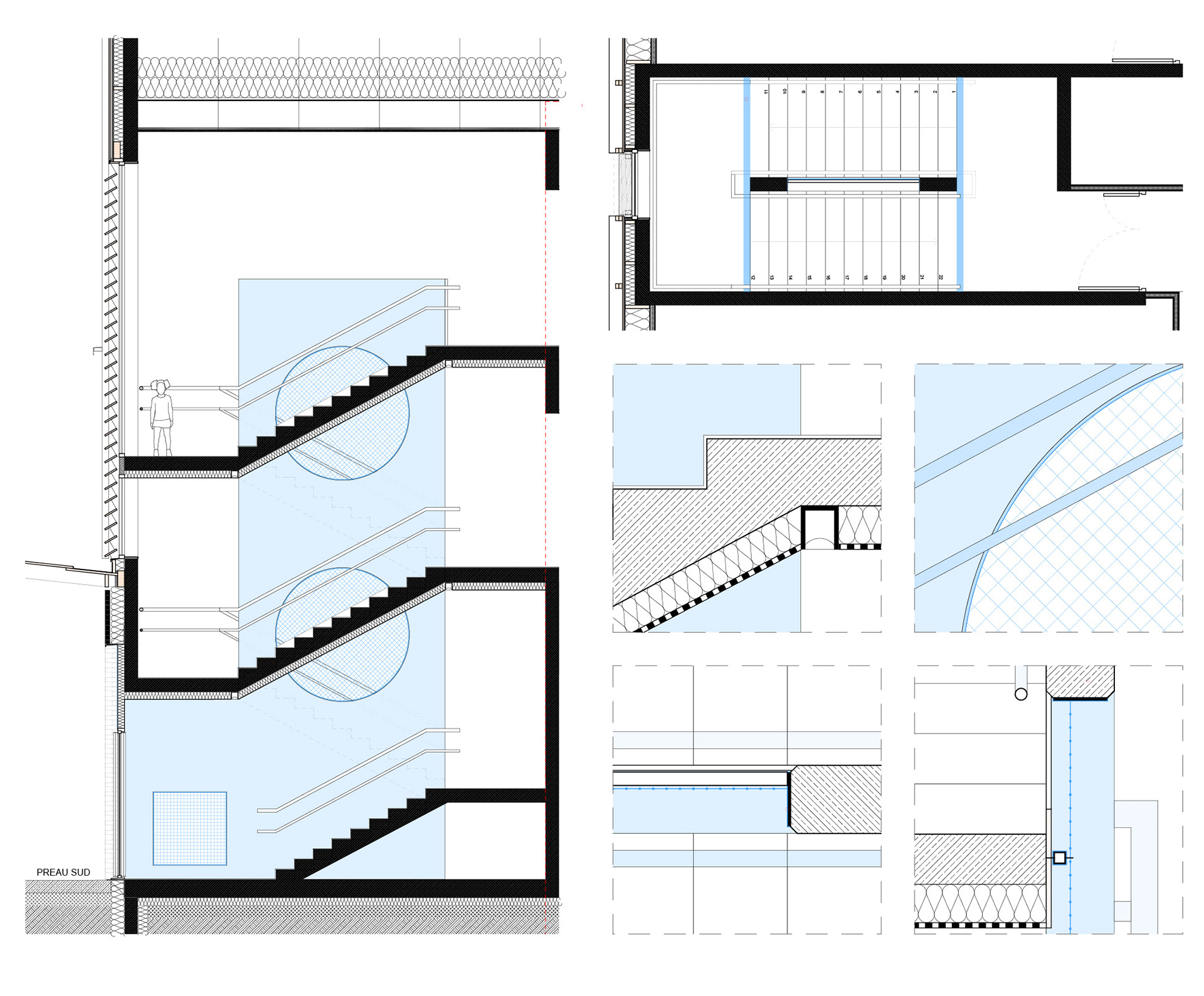 Élaboration de pièces graphiques phases concours et projet détaillé pour atelier TANKA architectes.