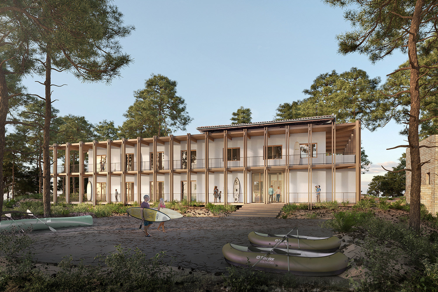 Réhabilitation d'un bâtiment communal en hôtel restaurant sur lac.