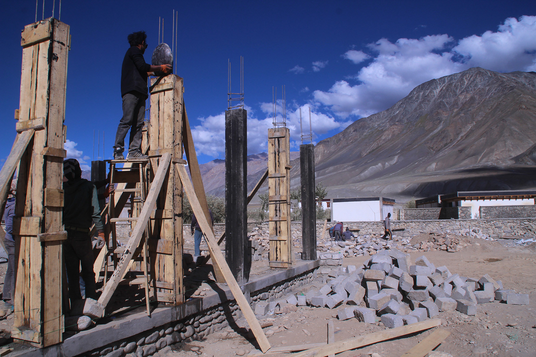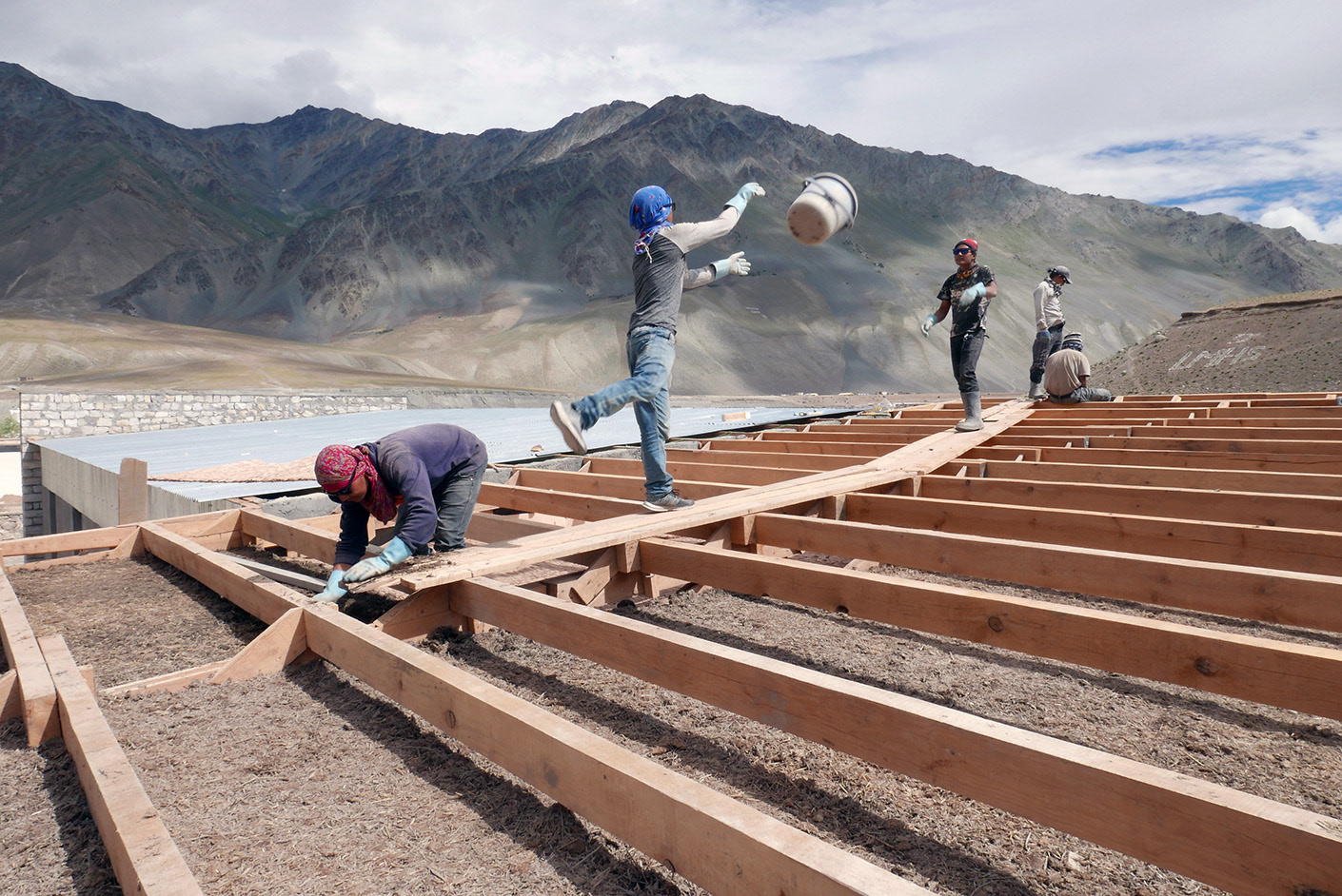 Construction de dortoirs bioclimatiques dans l'Himalaya indien.